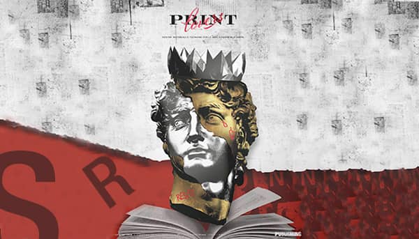Un libro che si apre, una testa coronata che affiora. Il re muore, e nello stesso gesto rinasce. Così l’editoria: cambia volto, si trasforma, ma non smette di regnare. Ogni pagina è un addio e insieme un inizio, un atto di coraggio che custodisce la promessa di un nuovo splendore.